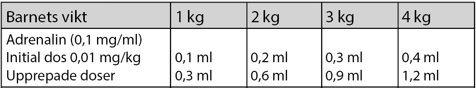 Fortsatt bradykardi och behov av upprepade doser adrenalin ska alltid föranleda förnyad utvärdering av ventilationsinsatserna.
